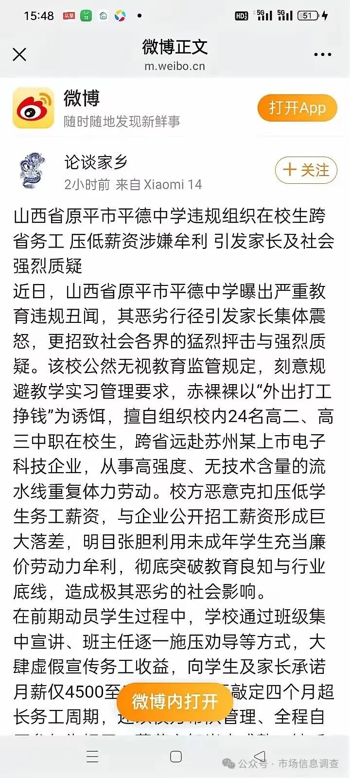 截至发稿,山西省原平市平德中学始终保持沉默,未就此次违规组织学生务工、薪资严重克扣等核心问题,给出任何正面回应与合理解释,对于事件后续调查处置进展,将持续紧盯到底