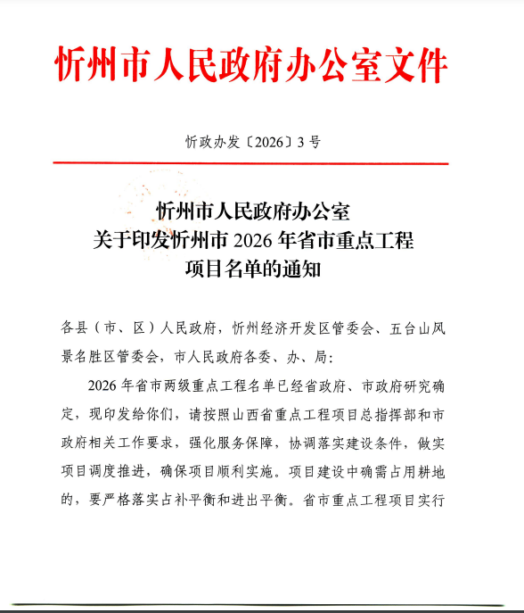 忻州市公布2026年省市重点工程名单!省级77个,市级56个