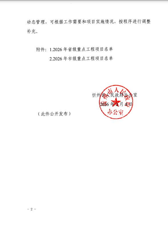 · 忻州市公布2026年省市重点工程名