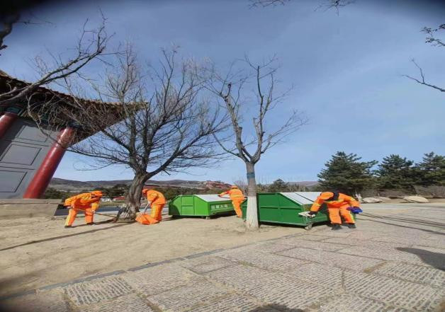 五台山景顺物业管理有限公司环卫工人的主要工作有:景区内的人行道、车道、路牙、下水口、隔离桩、树穴、路面粘状物的日常清扫、公交站台站点及周边环境卫生、景区山林、河道的卫生,29个村庄街道、小巷、广场的日常清扫,190余个垃圾箱的清理清运工作,有一群橘黄人默默地为靓丽五台山风景区梳妆整容。