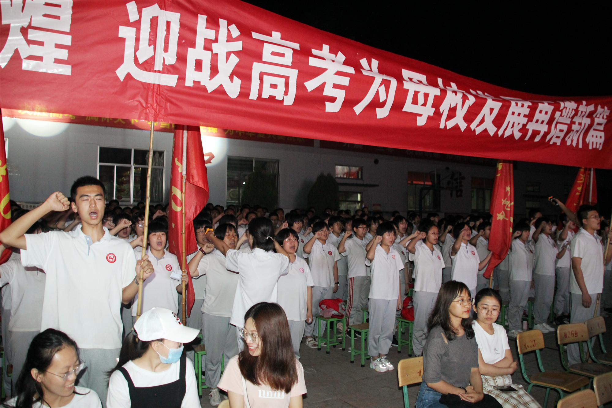 新高三学生代表王晔同学挥舞荣誉战旗